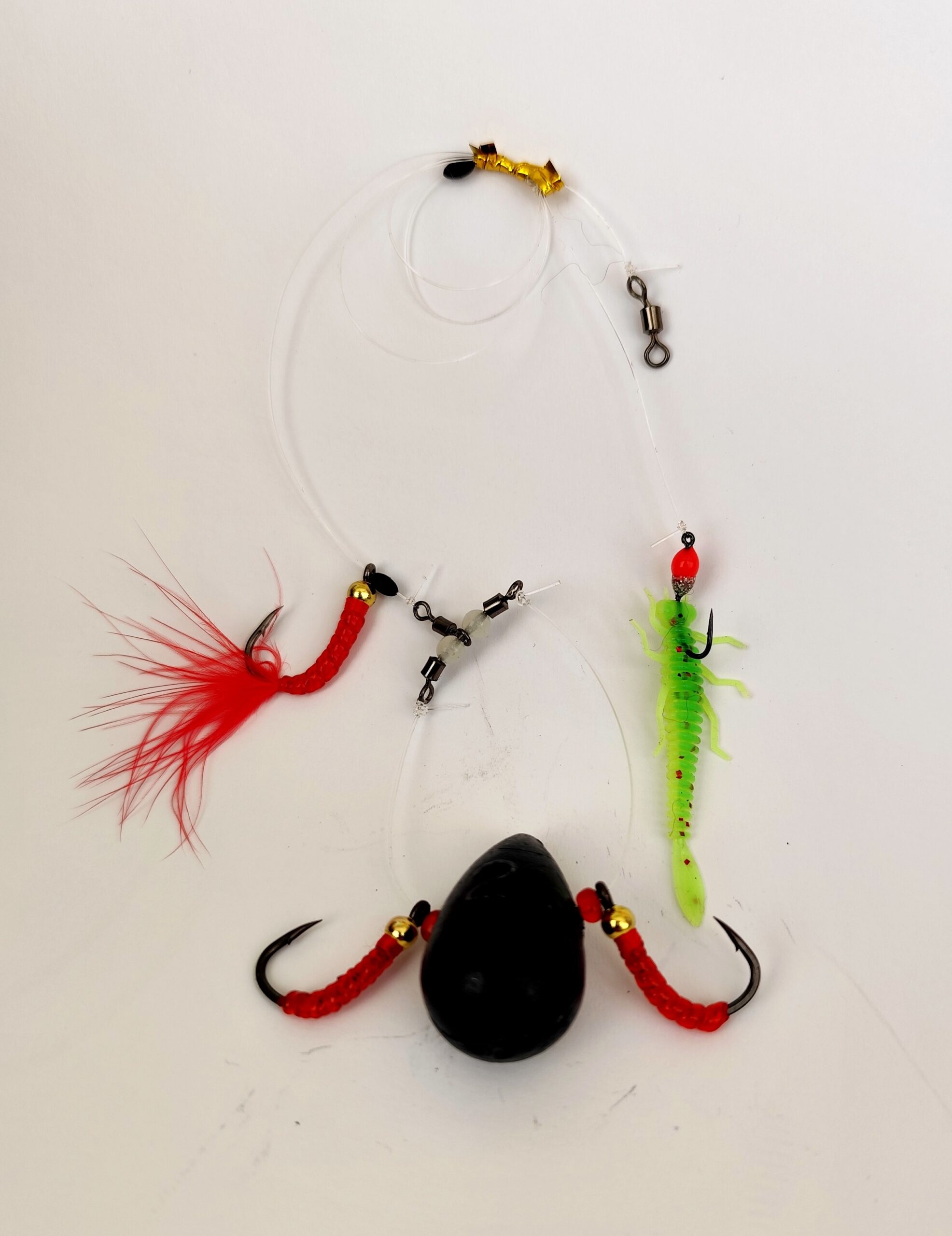Velnio sistema ešeriui 56gr. su 3 šokliukai ir stacionariai pririštu guminuku. Puikiai tinka naudoti kuršių mariose, Kauno mariose, bei ežeruose. avižėles su guminuku spalva gali skirtis nuo pavaizduotos